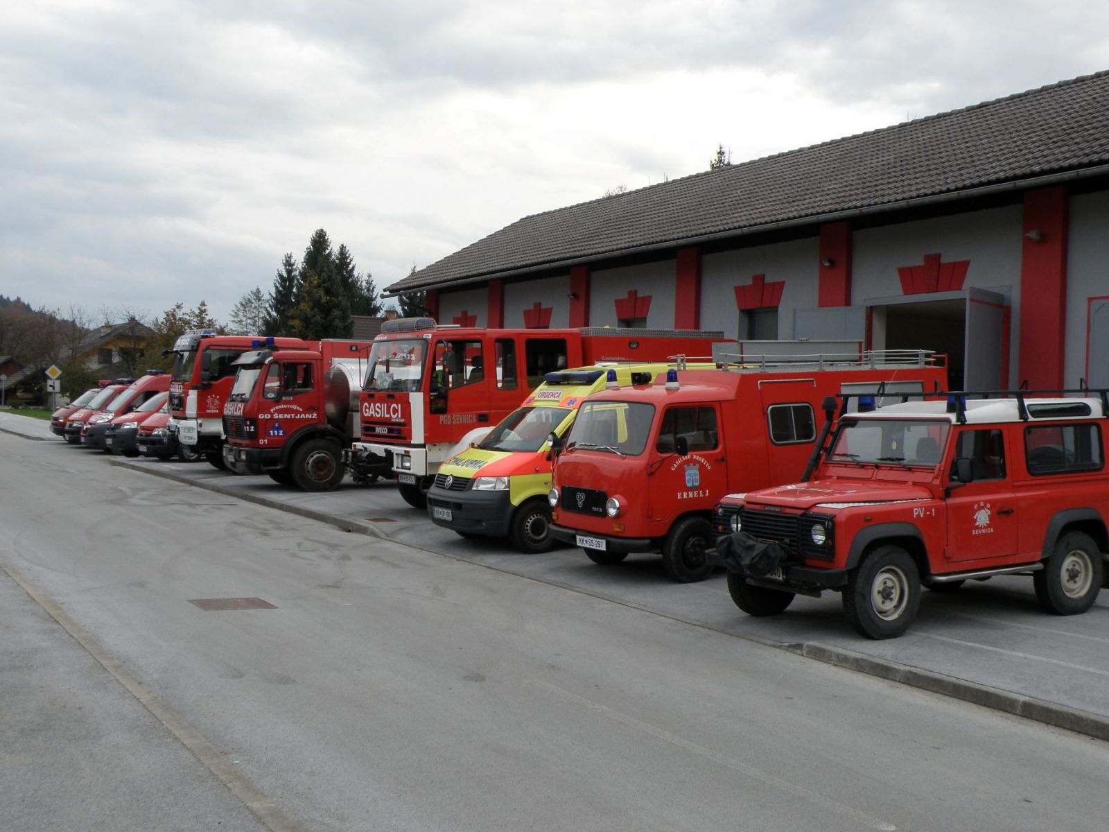 PROSTOVOLJNO GASILSKO DRUŠTVO KRMELJ - 1929 Začetki gasilstva v tem kraju segajo v leto 1929, ko je bila na pobudo Franja Bulca iz Mirne ustanovljena gasilska enota v takratnem rudniku rjavega premoga, katerega lastnik je bil Andrej Jakil. Povod za ustanovitev gasilske enote je bil požar v separaciji, ki je pogorela do tal. Zbralo se je deset mlajših mož, ki so sestavljali jedro gasilske enote. Vodila sta jo Anton Zupančič in Franc Mirt. Imeli so velike težave z nabavo ustreznega gasilskega orodja, kajti lastnik rudnika ni imel veliko posluha za potrebe gasilcev. Enota je bolj životarila, saj niso imeli svojih prostorov in so hodili na gasilske vaje celo v sosednji Šentjanž. Člani enote so bili v glavnem delavci rudniške remontne delavnice. Med vojno je bilo delo gasilske enote prekinjeno. Rudnik je bil požgan, naprave uničene in tudi vsa gasilska dokumentacija je pogorela s požigom separacije. Leta 1949 se je z obnovo rudnika izoblikovala nova gasilska četa. Vsi nekdanji člani so se ponovno vključili v društvo, pridružilo pa se je še mnogo drugih. Dobili so dovoljenje za delovanje, ki ga je izdal Odsek za notranje zadeve takratnega Okrajnega ljudskega odbora Trebnje. Z ustanovitvijo kovinarske šole v Krmelju se je društvo pomladilo in že leta 1950 imelo člansko in mladinsko ekipo ter desetino članic. Gonilni gasilec je bil takratni obratovodja Horjak. Imeli so že sodobno ameriško prevozno črpalko in veliko druge opreme za gašenje požarov z vodo. Društvo je dvakrat poskušalo z akcijo izgradnje gasilskega doma, vendar vedno neuspešno. Šele z zidavo rudniških garaž je bil leta 1950 postavljen lesen gasilski stolp in nova orodjarna za hrambo orodja. Za prevoz so uporabljali rudniška vozila, ki pa niso bila vedno na razpolago. Društvo se je vseskozi ukvarjalo z denarnimi težavami. Hotelo se je preimenovati v industrijsko društvo, pa premogovnik tega predloga ni hotel sprejeti, ker je rudnik že imel težave s prodajo premoga. Po zaprtju rudnika je nastala nova tovarna – Metalna. Pet let so gasilci še imeli prostor ob garažah, potem pa je ta prostor Metalna preuredila v obrat družbene prehrane. Gasilci so v zameno dobili tri prostore v bivši železniški postaji, ki jo je Metalna odkupila od Železnice. Društvo je v tem času zelo dobro delovalo in leta 1967 preselilo opremo v prostore železniške postaje. V tem letu se je tudi preimenovalo v Prostovoljno industrijsko gasilsko društvo Krmelj in začelo sodelovati tudi z drugimi industrijskimi društvi. Leta 1969 so kupili IMV kombi za prevoz moštva in nato v letu 1984 orodno vozilo TAM 75 T5. Leta 2009 so ob 80-letnici svečano predali v uporabo prenovljene prostore adaptiranega gasilskega doma. Postroj gasilskih vozil po končani večji vaji pred obnovljenim gasilskim domom v Krmelju